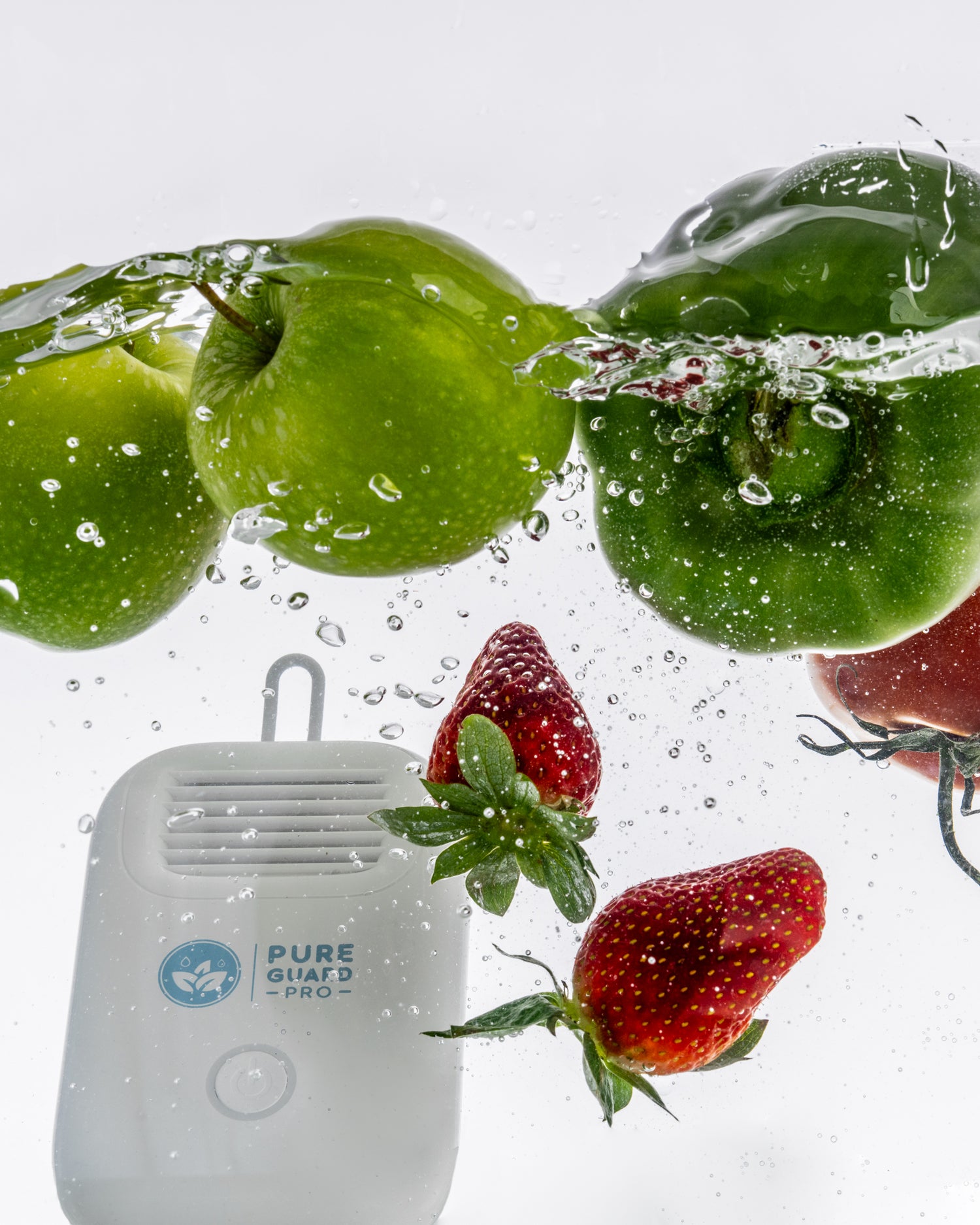 The Pure Guard Pro harnesses the power of electrolysis to purify your produce. The device features an anode and a cathode plate, when submerged in water, creates a mild electrical current.